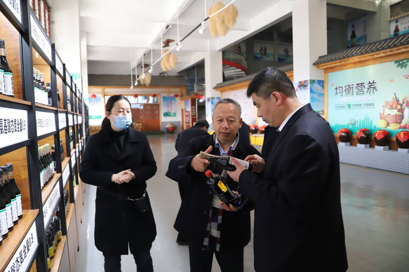考察团先后参观了传统陈醋车间、天然晒棚、酱油食醋发酵储存罐、江北酿造文化博物馆、山东职健检测技术有限公司等,了解企业生产经营发展状况、今后的规划设想及遇到的困难,并交流开展党的群众路线教育实践活动。
